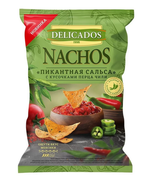 Чипсы DELICADOS NACHOS 150гр Кукурузные пикантная сальса с перецем чили халапеньо 1/15шт Чипсы DELICADOS NACHOS 150гр Кукурузные пикантная сальса с перецем чили халапеньо 1/15шт