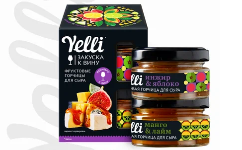 Горчица YELLI 100гр Для сыра инжир/яблоко/манго/лайм ст/б 1/6шт