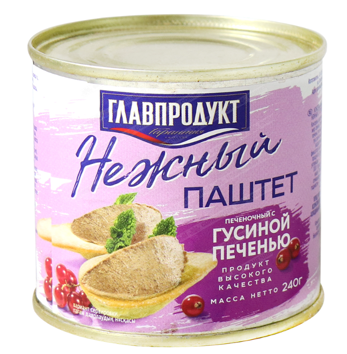 Паштет ГЛАВПРОДУКТ 240гр Нежный из гусин печени 1/20шт