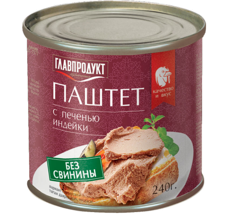 Паштет ГЛАВПРОДУКТ 240гр С печенью индейки 1/20шт Паштет ГЛАВПРОДУКТ 240гр С печенью индейки 1/20шт
