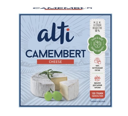 Сыр ALTI Камамбер 100гр 50% с белой плесенью пастеризованный 1/7шт