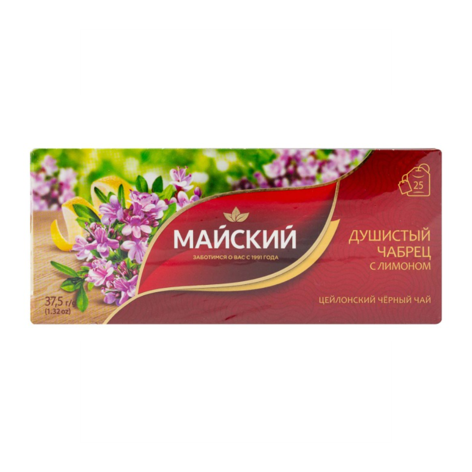 Чай черный в пакетиках МАЙСКИЙ 25*1,5гр Душистый чабрец/лимон 1/18шт