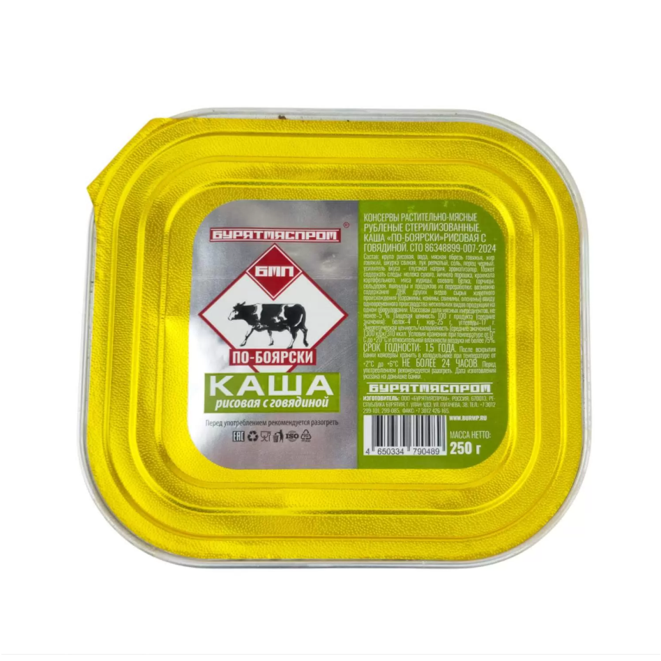 Каша рисовая БУРЯТМЯСПРОМ 250гр С говядиной По-Боярски СТО 1/20шт ламистер