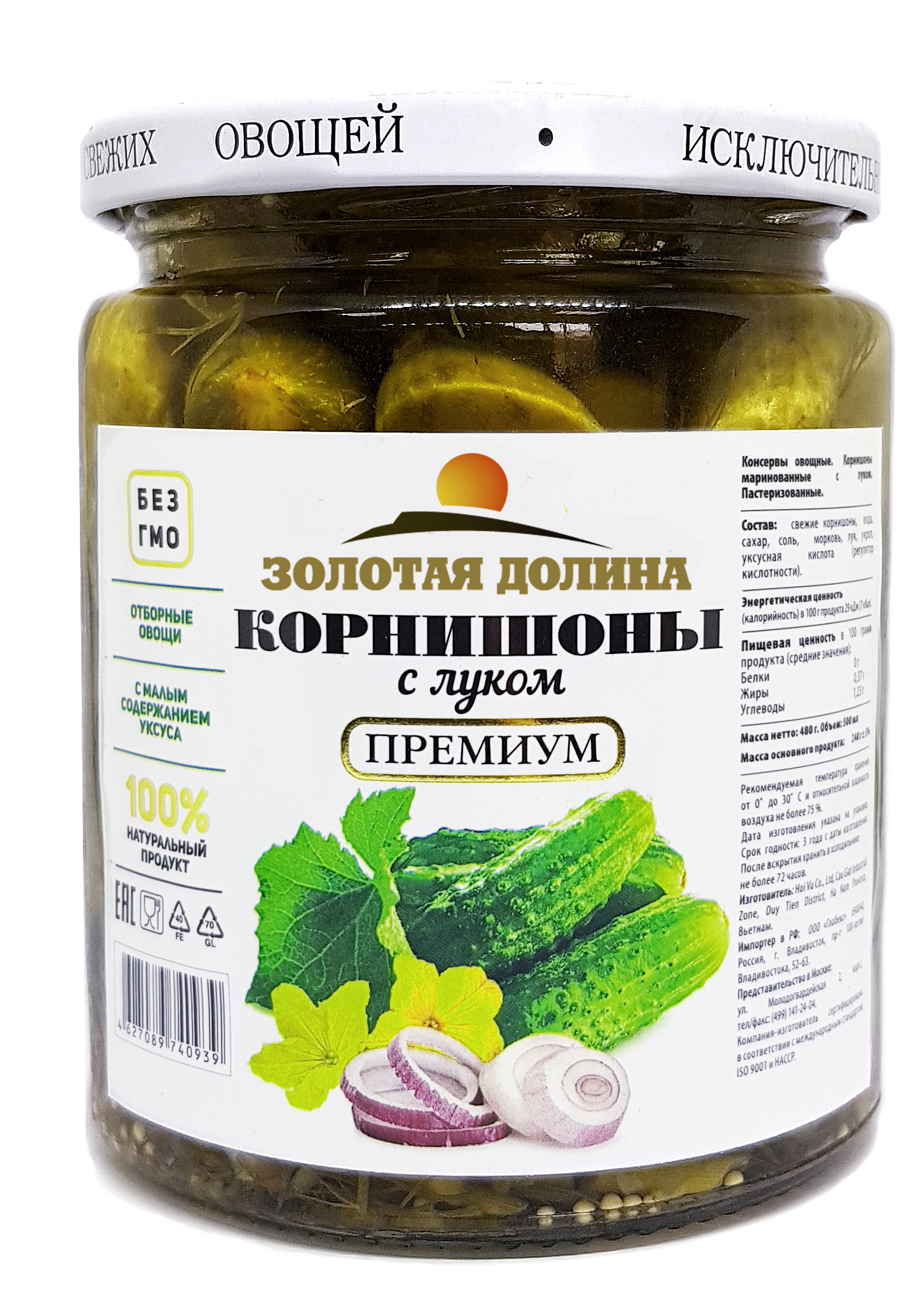 Корнишоны ЗОЛОТАЯ ДОЛИНА 500мл С луком ст/б 1/12шт