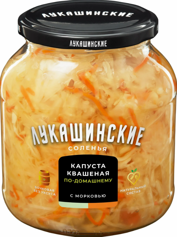 Капуста квашеная Лукашинские 670гр По-домашнему с морковью ст/б 1/6шт Капуста квашеная Лукашинские 670гр По-домашнему с морковью ст/б 1/6шт