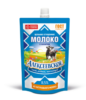 Молоко сгущенное АЛЕКСЕЕВСКОЕ 100гр Цельное с сахаром 8,5% д/п 1/36шт без ЗМЖ