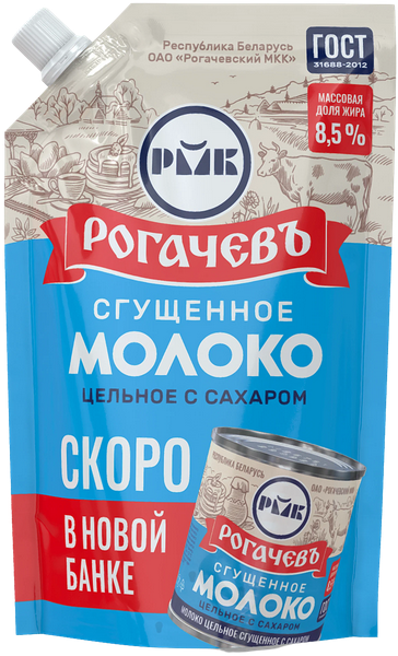 Молоко сгущенное РОГАЧЕВЪ 270гр С сахаром 8,5% д/п 1/24шт Беларусь БЗМЖ