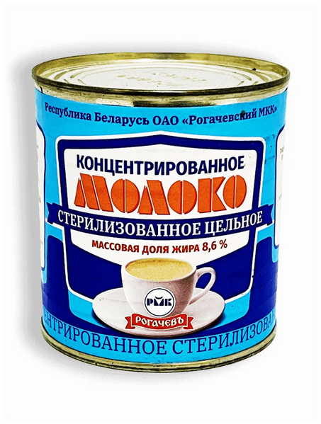 Молоко концентрированное РОГАЧЕВЪ 300гр Цельное 8,6% ж/б 1/30шт БЗМЖ
