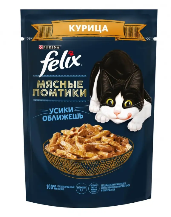 Корм д/кошек FELIX 75гр Курица ломтики 1/26шт Корм д/кошек FELIX 75гр Курица ломтики 1/26шт