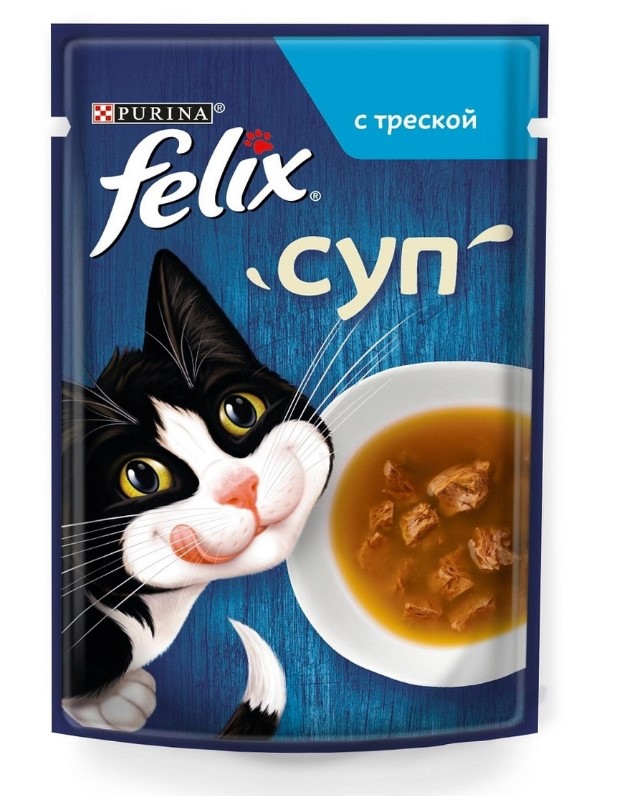 Корм д/кошек FELIX 48гр Суп с треской 1/36шт Корм д/кошек FELIX 48гр Суп с треской 1/36шт