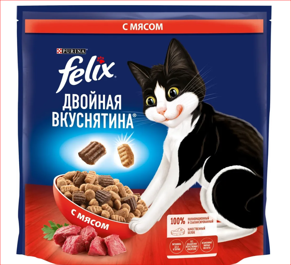 Корм д/кошек FELIX Двойная вкуснятина 200гр Мясо 1/8шт Корм д/кошек FELIX Двойная вкуснятина 200гр Мясо 1/8шт