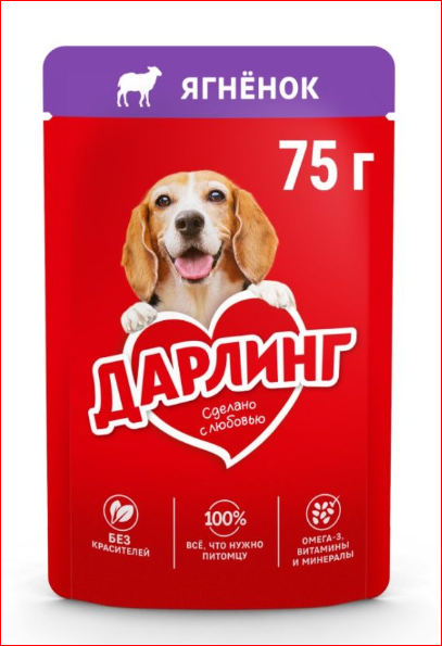 Корм д/собак ДАРЛИНГ 75гр Ягнёнок в подливе 1/26шт Корм д/собак ДАРЛИНГ 75гр Ягнёнок в подливе 1/26шт