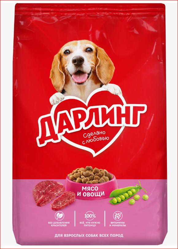 Корм д/взр собак ДАРЛИНГ 500гр Мясо/овощи 1/12шт Корм д/взр собак ДАРЛИНГ 500гр Мясо/овощи 1/12шт