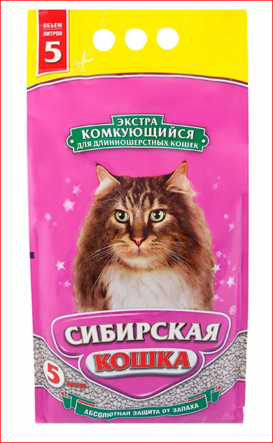 Наполнитель СИБИРСКАЯ КОШКА Экстра 5л комкующийся д/длиношерстных 1/4шт