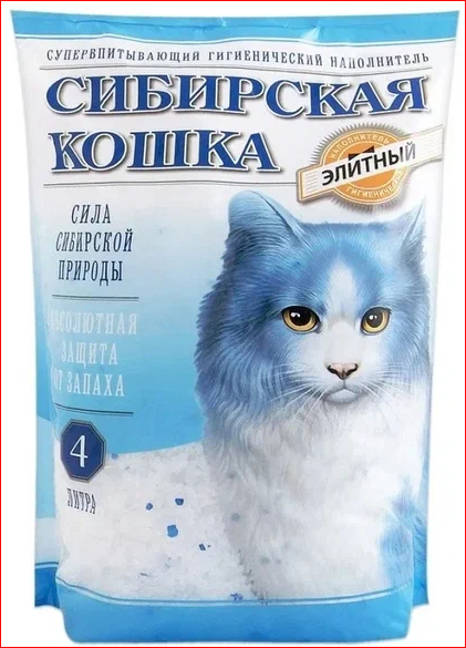 Наполнитель СИБИРСКАЯ КОШКА ЭЛИТА 4л Carbon силикагель 1/8шт